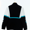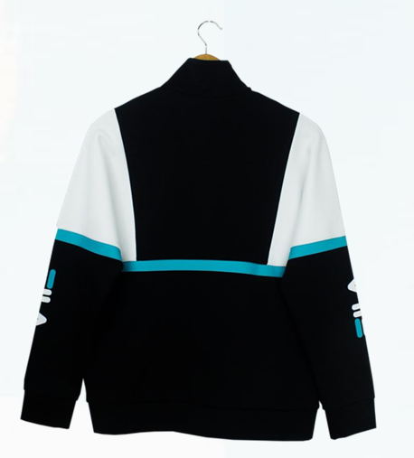 Contrast color blocking at the back of the garment.