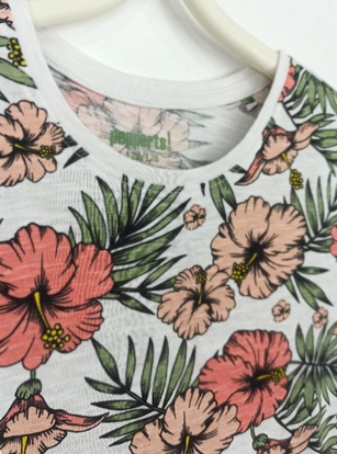 tropical print is used to bring a resort vibe.